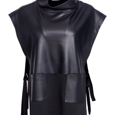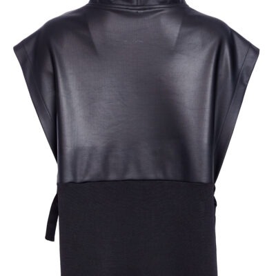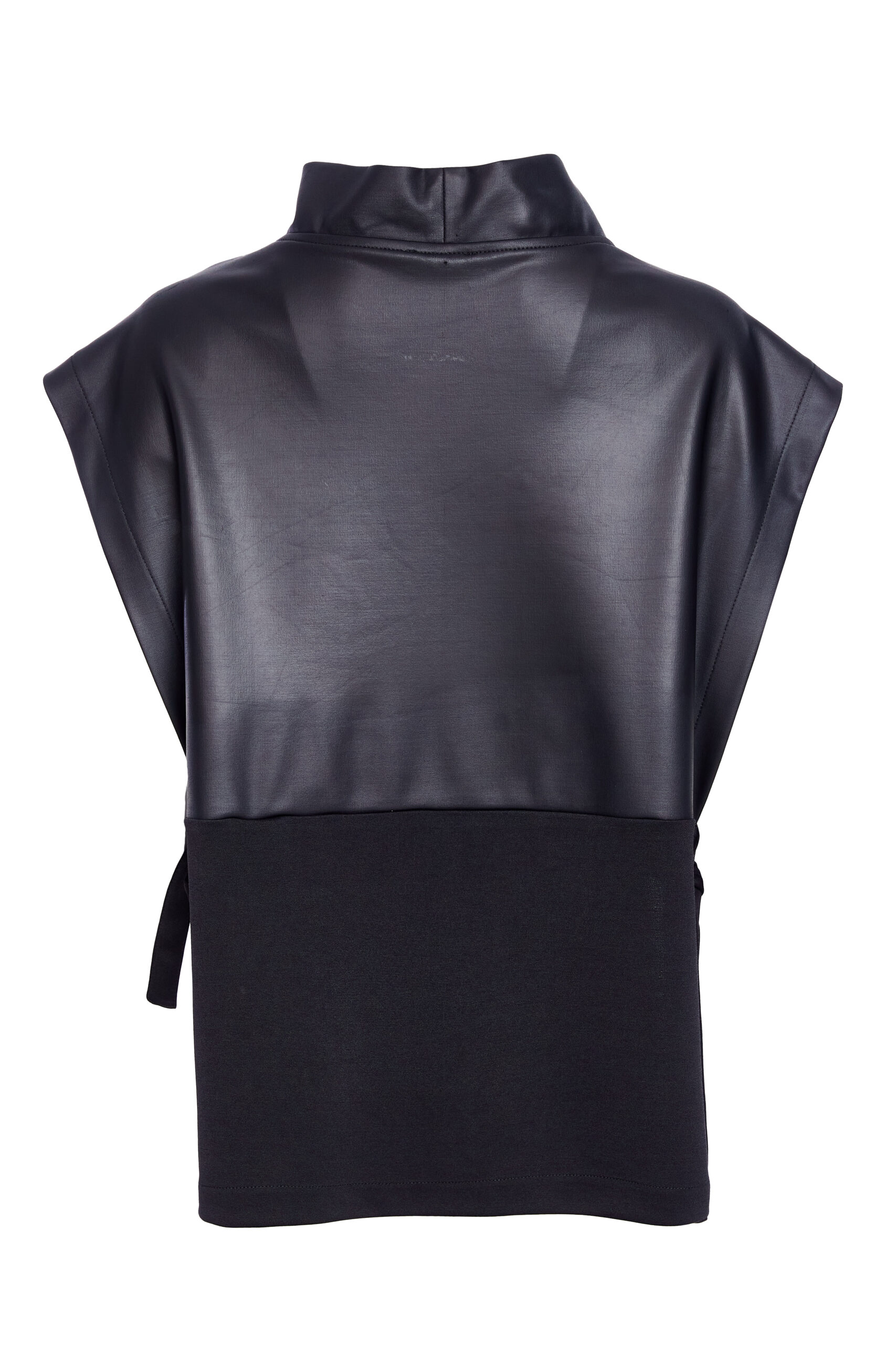 SLEEK STYLING; NAYA reinvent faux leather this season and deliver a beautiful high collar, open side top designed to elevate the most basic of looks. Wear it over dresses, tops or shirts, the choice is endless.
