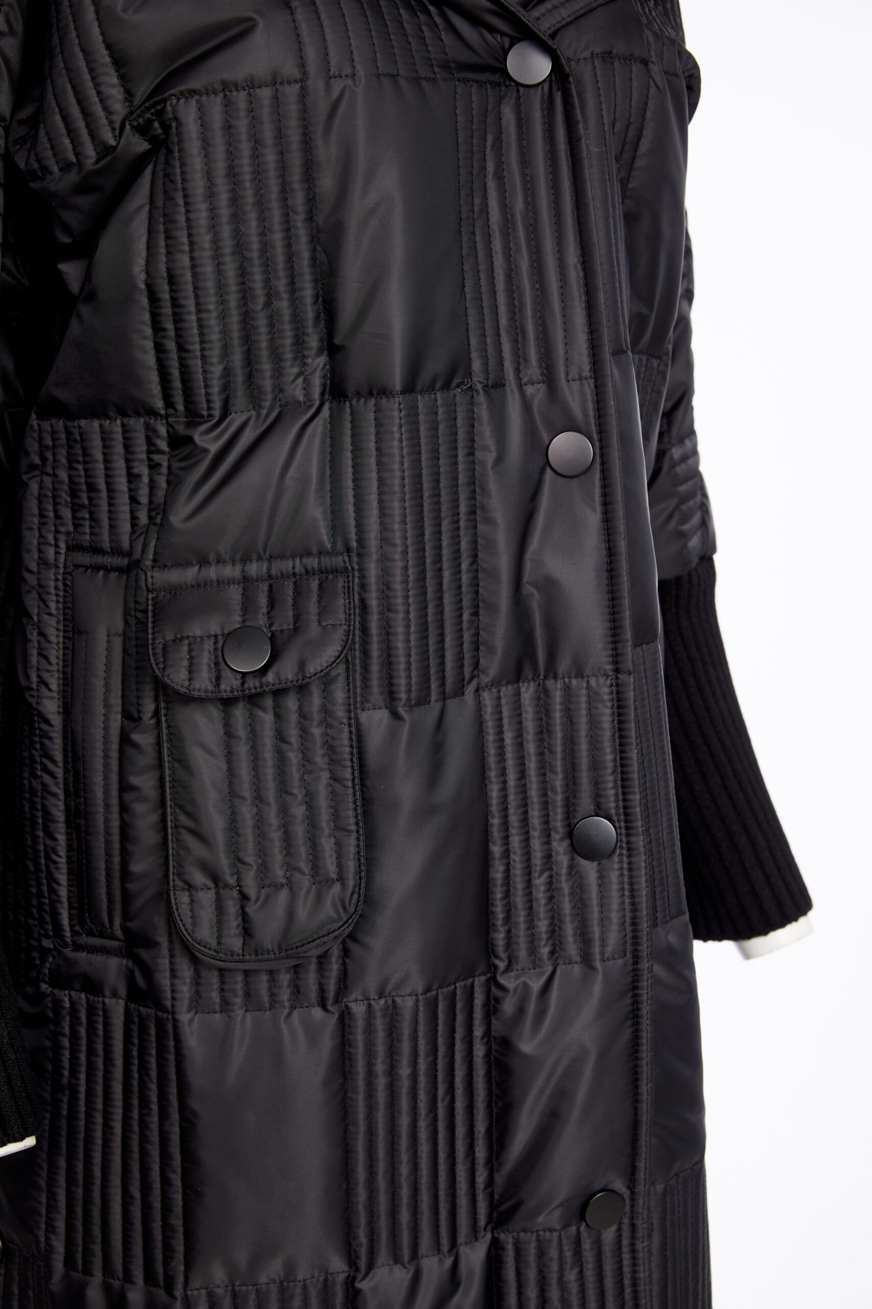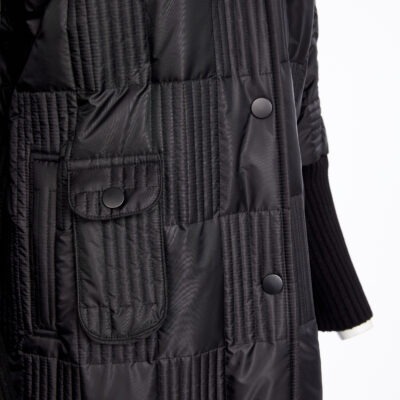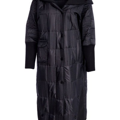 SAVVY INVESTMENT: Look to the NAYA padded coat with a hood for a quality buy this season. In elegant black the padded texture is boosted by the deep ribbed cuffs, ribbed collar and colour drenched buttons.