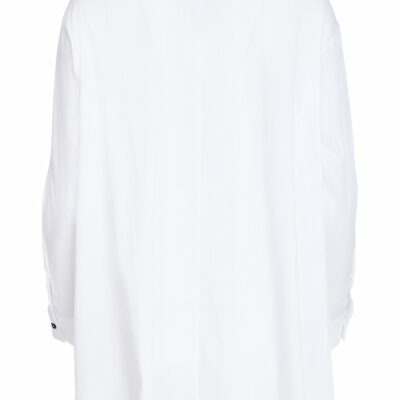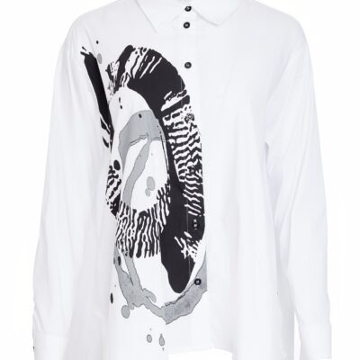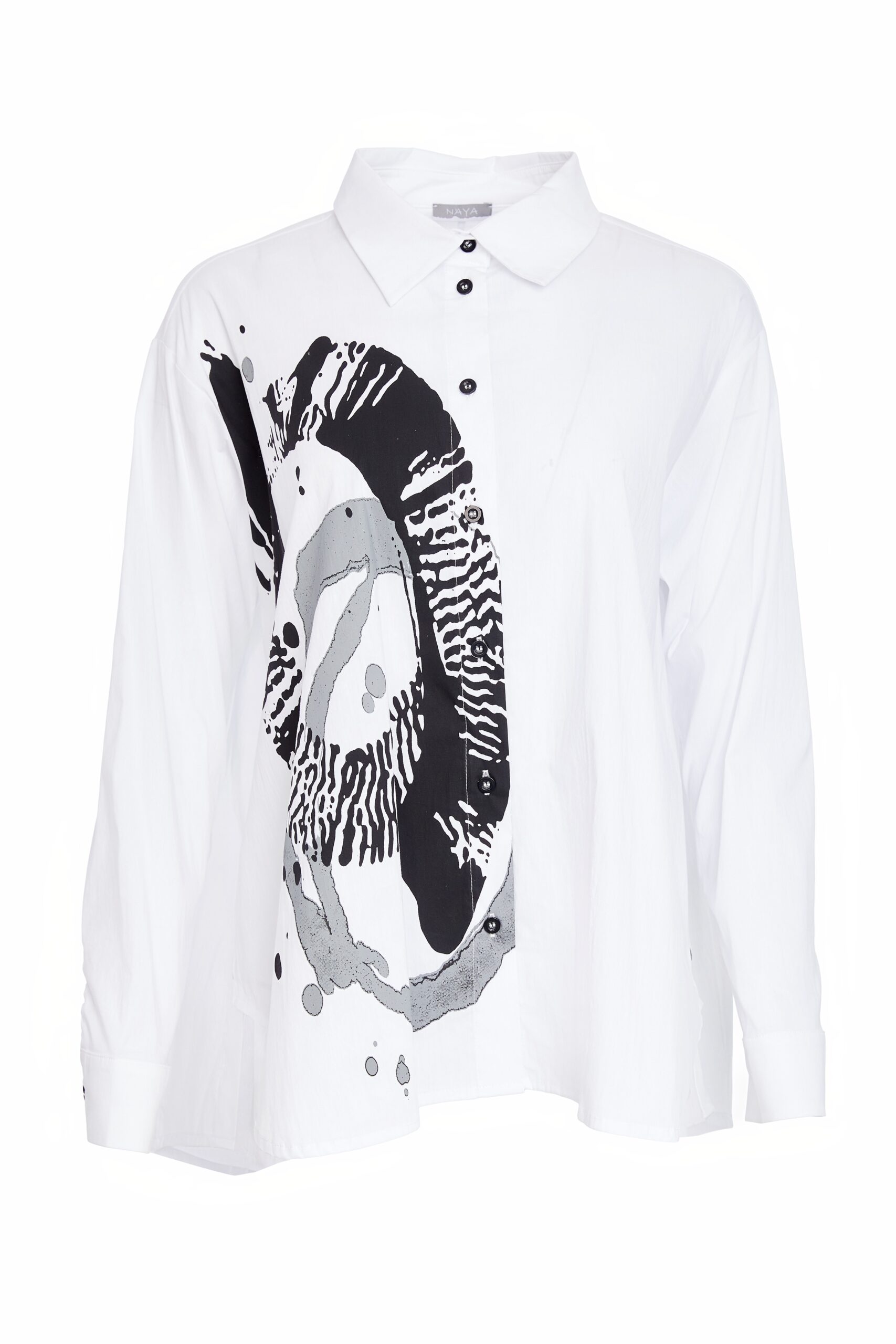 SHARP SHIRTING; There is nothing plain about the NAYA crisp white shirt with a contrast print. Keeping the print to one side its generously layered to create impact. Finished with complimenting buttons, it cant be ignored.